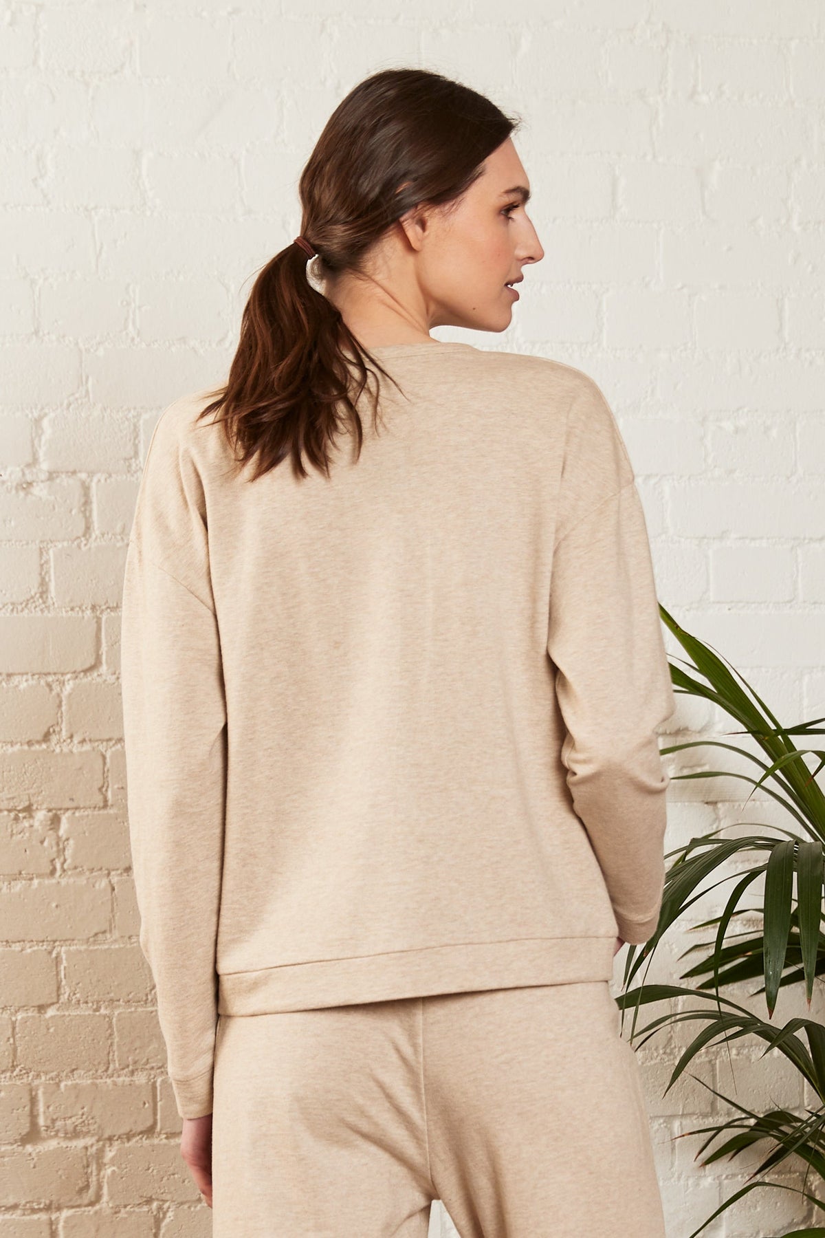 A sweatshirt-style top with a unique pleat detail. Crafted in our neutral oatmeal colour, you can easily wear this with our matching jogger style trousers for a comfy, coordinated look: perfect for quick trips into town.