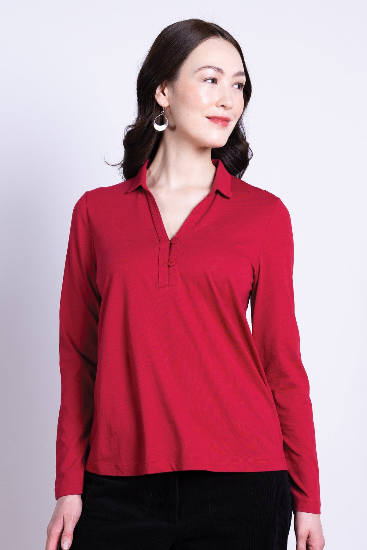 The collared Jersey top is the ultimate closet staple. The organic cotton fabric is breathable and comfortable, while the tailored collar and button closure give you a polished, put-together look. Dress it up with trousers and heels for the office, or keep it casual with your favorite jeans - this top seamlessly transitions from day to night.